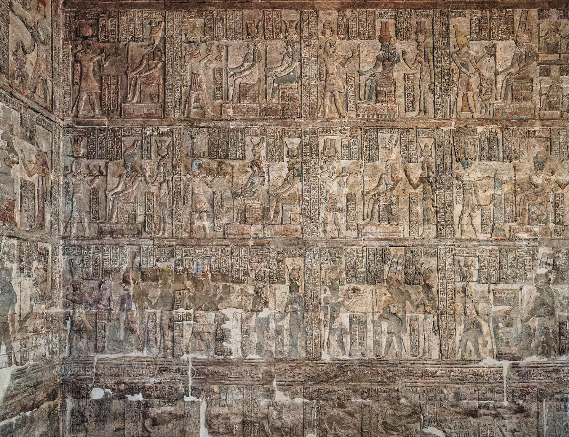 L'intérieur du temple est un véritable trésor pour l'égyptologie, car il abrite des reliefs d'une finesse exceptionnelle datant des règnes des empereurs Hadrien et Antonin le Pieux. Les parois sont ornées de scènes rituelles où l'empereur fait des offrandes à Isis ainsi qu'à d'autres divinités thébaines comme Amon et Mout. Un aspect fascinant de ce site réside dans la préservation de ses couleurs et la présence de nombreux graffitis anciens qui témoignent de la ferveur des pèlerins à travers les siècles. Ce temple, restauré récemment, demeure l'un des rares vestiges romains de la région à illustrer avec autant de clarté la persistance et l'évolution du culte d'Isis à la fin de l'Antiquité.